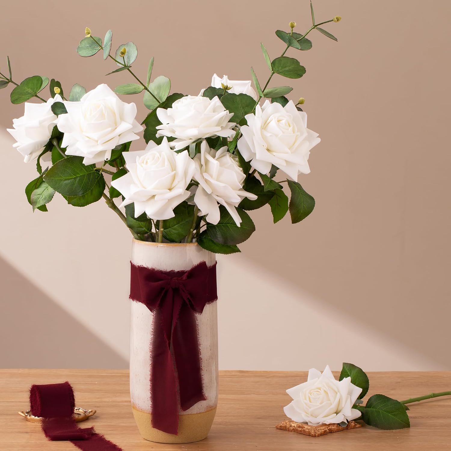 • 【Size and Color】Each roll of chiffon ribbon is 2 inches wide and 7 yards long, perfect for various creative uses such as making bows, decorating wreaths, and DIY crafts. This set includes 3 rolls burgundy ribbons. These vibrant frayed ribbons add a rustic charm to your creations, ideal for bouquet wrap or gift ribbon.