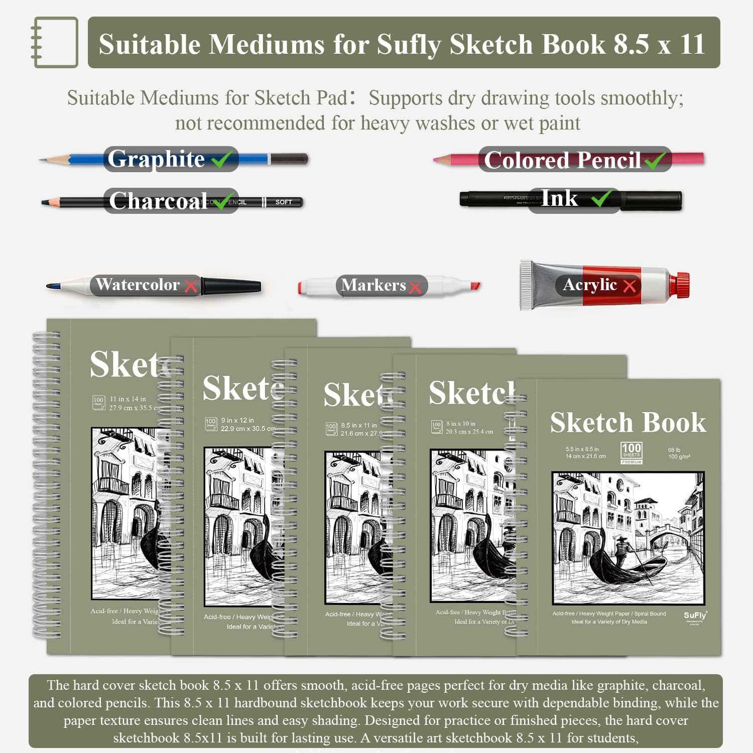 - SIDE SPIRAL-BOUND SKETCHBOOK, EASY PAGE TURNING – With a side spiral bind, all the drawing paper of this spiral sketchbook 8.5x11 is firmly held together and can be easily flipped and kept on the back. The metal spiral bind of sketchbook for drawing is sturdy and will not easily deform even after months of use, so you can feel free to draw your creations on the 8.5 x 11 sketchbook, SuFly art sketchbook can keep them long lasting.