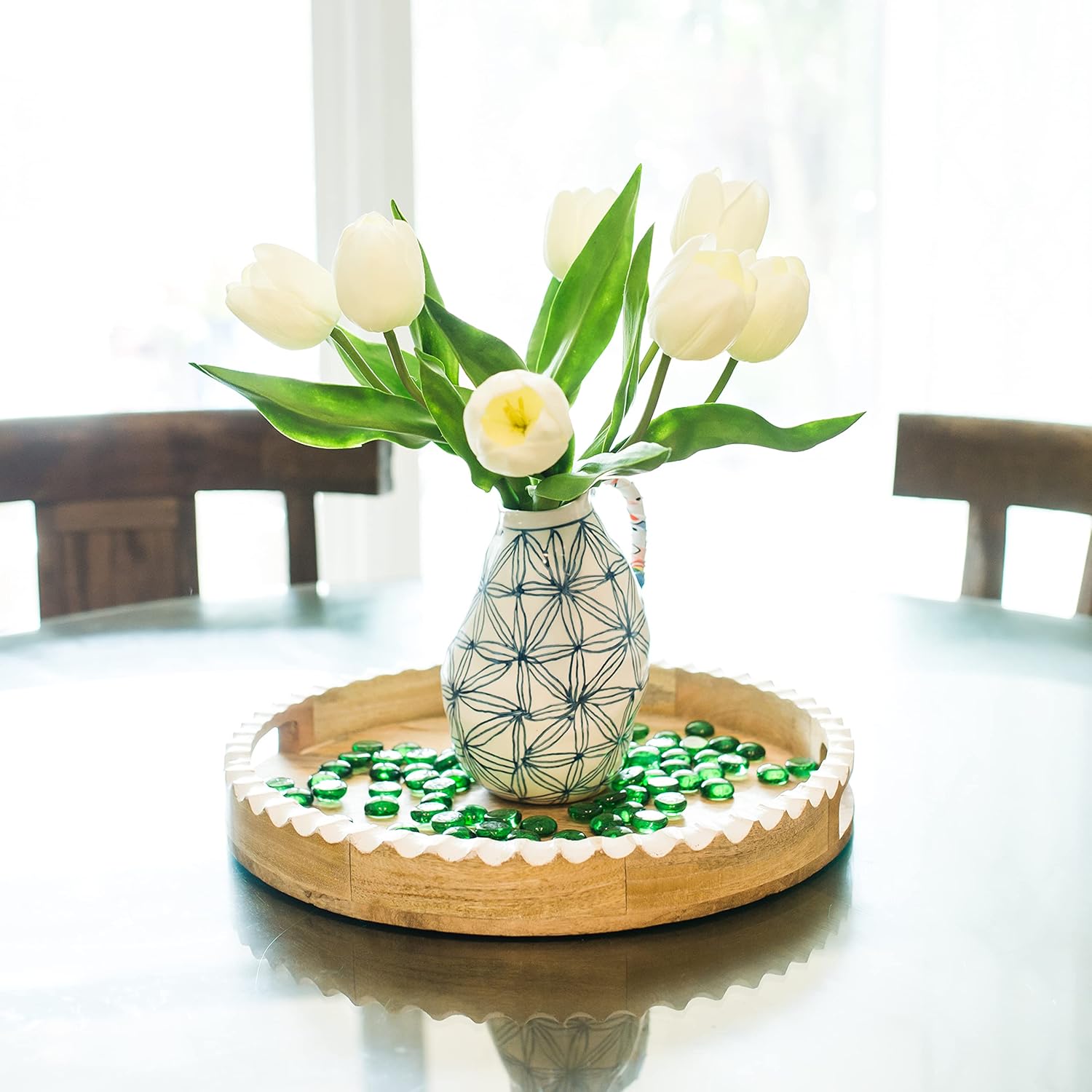 Galashield Flat Glass Marbles for Vases Green Glass Gems Beads Pebbles Vase Filler (5 LBS, Approx. 540 PCS)