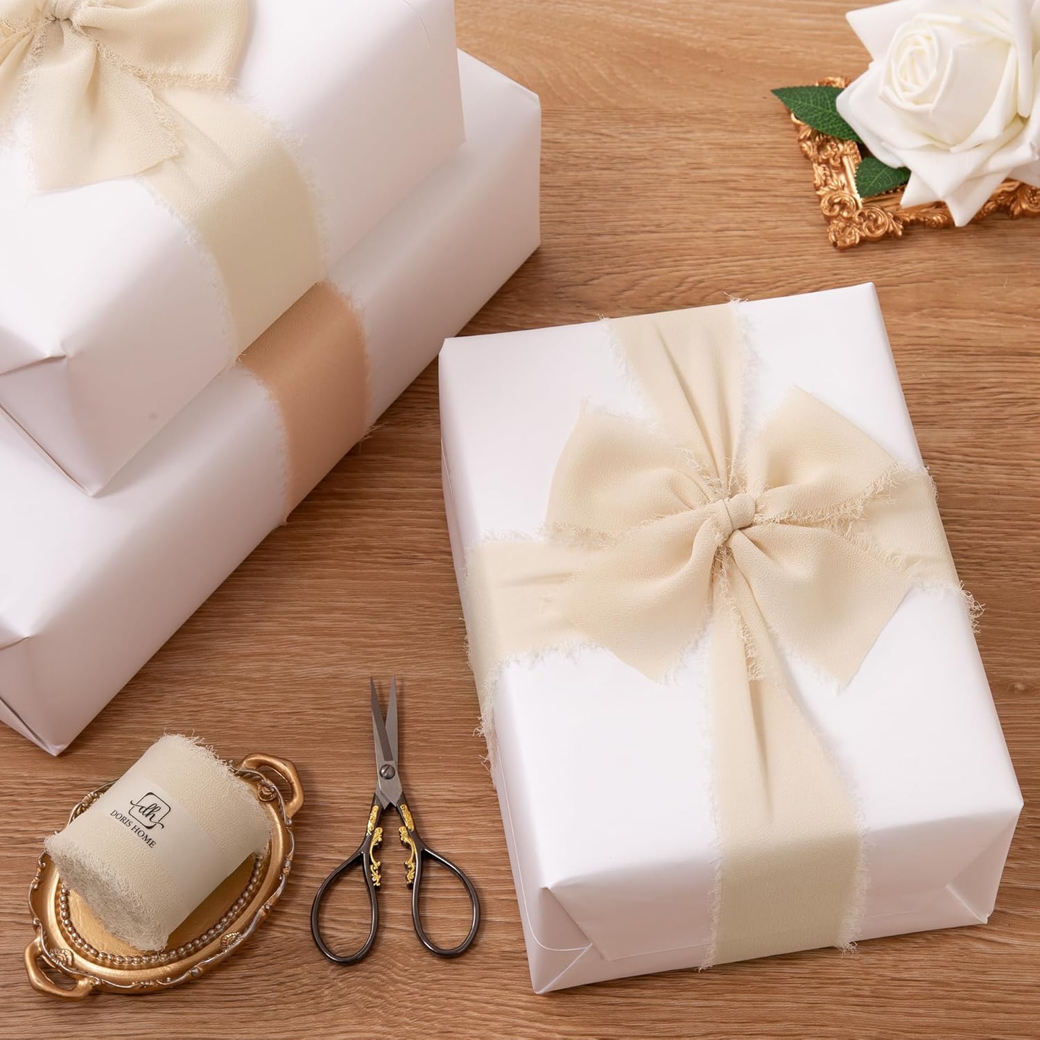- 【Multiple Applications】This chiffon silk ribbon is great for gift wrapping, wedding decorations, wedding invitations, birthday parties, holiday celebrations, bridal showers, newborn photography props, wedding aisle backgrounds, boutonnieres, flower girl baskets, bouquet wrapping ribbons, Easter baskets, and even Christmas gift wrapping. Its elegant appearance makes it an ideal choice for bohemian or rustic DIY projects.