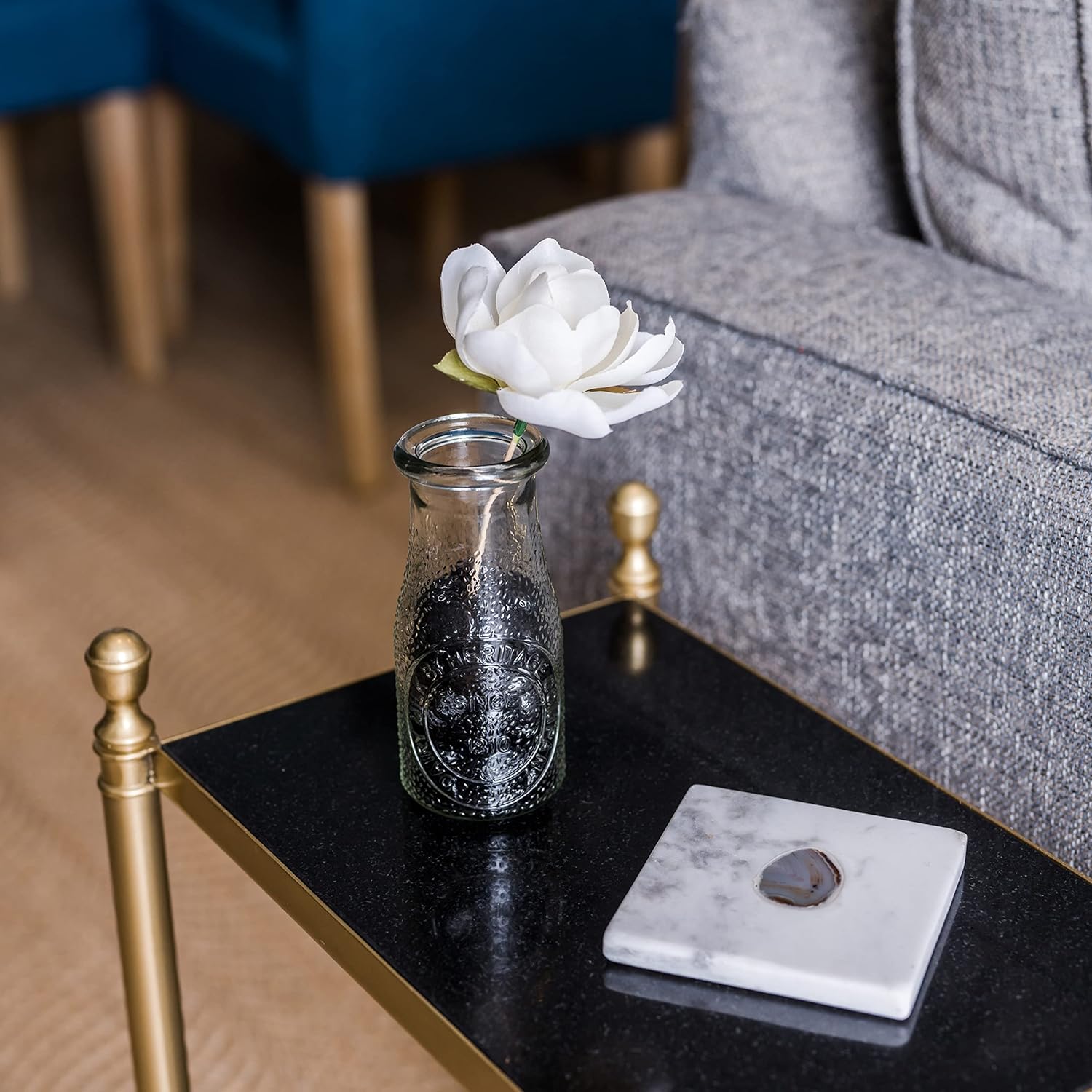 Galashield Flat Glass Marbles for Vases Black Glass Gems Beads Pebbles Vase Filler (5 LBS, Approx. 540 PCS)