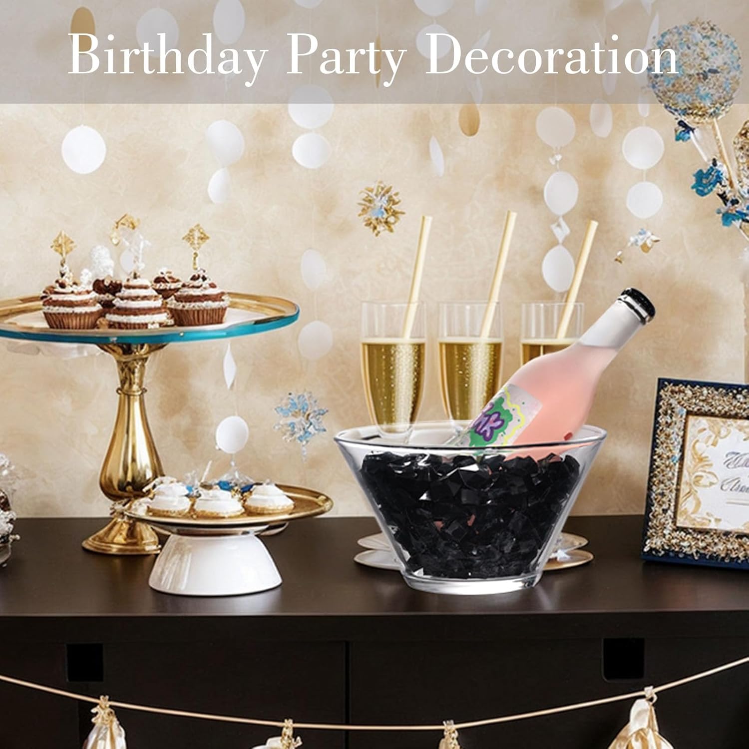 DomeStar Black Fake Ice, 150PCS Acrylic Fake Diamonds, Vase Fillers Black Plastic Gems Marbles for Vase DIY Craft Aquarium Tank Rock Wedding Birthday Party Table Scatter Decorations