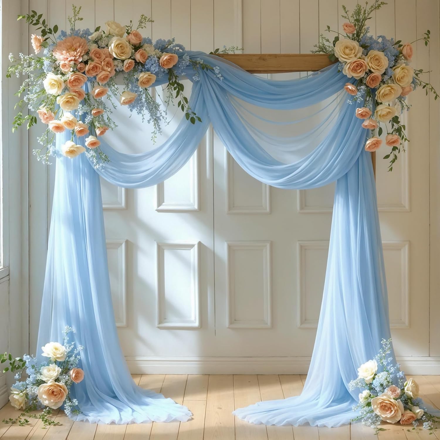 Wedding Arch Draping Fabric, 2 Panels 18FT Baby Blue Sheer Backdrop Curtain Chiffon Fabric Drapes Arbor Drapery Wedding Ceremony Reception Swag Decorations