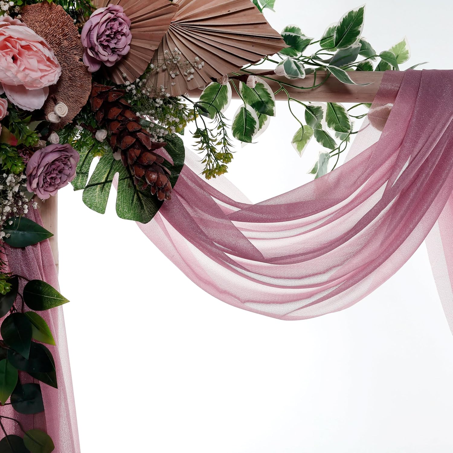 VDS Pack of 2 Panel (30 Inch X 30 Feet) Wedding Arch Draping Fabric Sheer Chiffon Fabric Drapery for Wedding Ceremony Reception Swag Backdrop Canopy Chuppah ARBO Altars Decoration (Mauva)