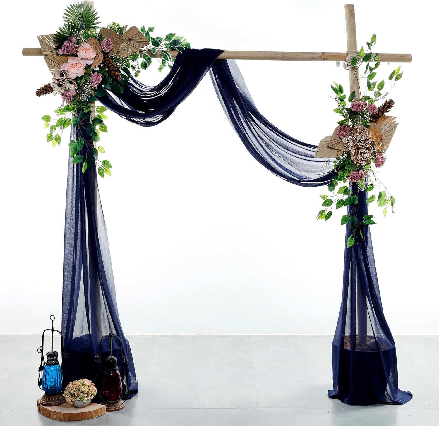 VDS Pack of 1 Panel (30 Inch X 20 Feet) Wedding Arch Draping Fabric Sheer Chiffon Fabric Drapery for Wedding Ceremony Reception Swag Backdrop Canopy Chuppah ARBO Altars Decoration (Navy Blue)