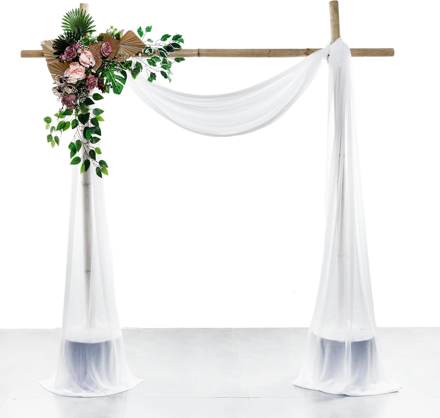 VDS Pack of 1 Panel (30 Inch X 20 Feet) Wedding Arch Draping Fabric Sheer Chiffon Fabric Drapery for Wedding Ceremony Reception Swag Backdrop Canopy Chuppah ARBO Altars Decoration (White)