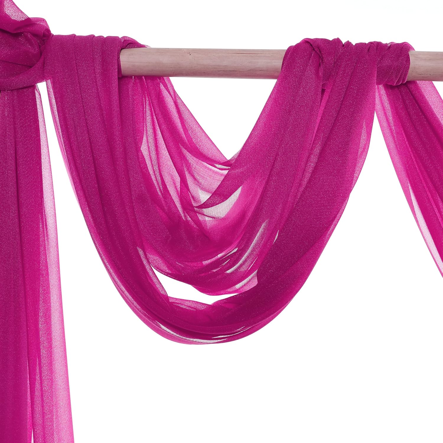 VDS Pack of 2 Panel (30 Inch X 20 Feet) Wedding Arch Draping Fabric Sheer Chiffon Fabric Drapery for Wedding Ceremony Reception Swag Backdrop Canopy Chuppah ARBO Altars Decoration (Magenta)