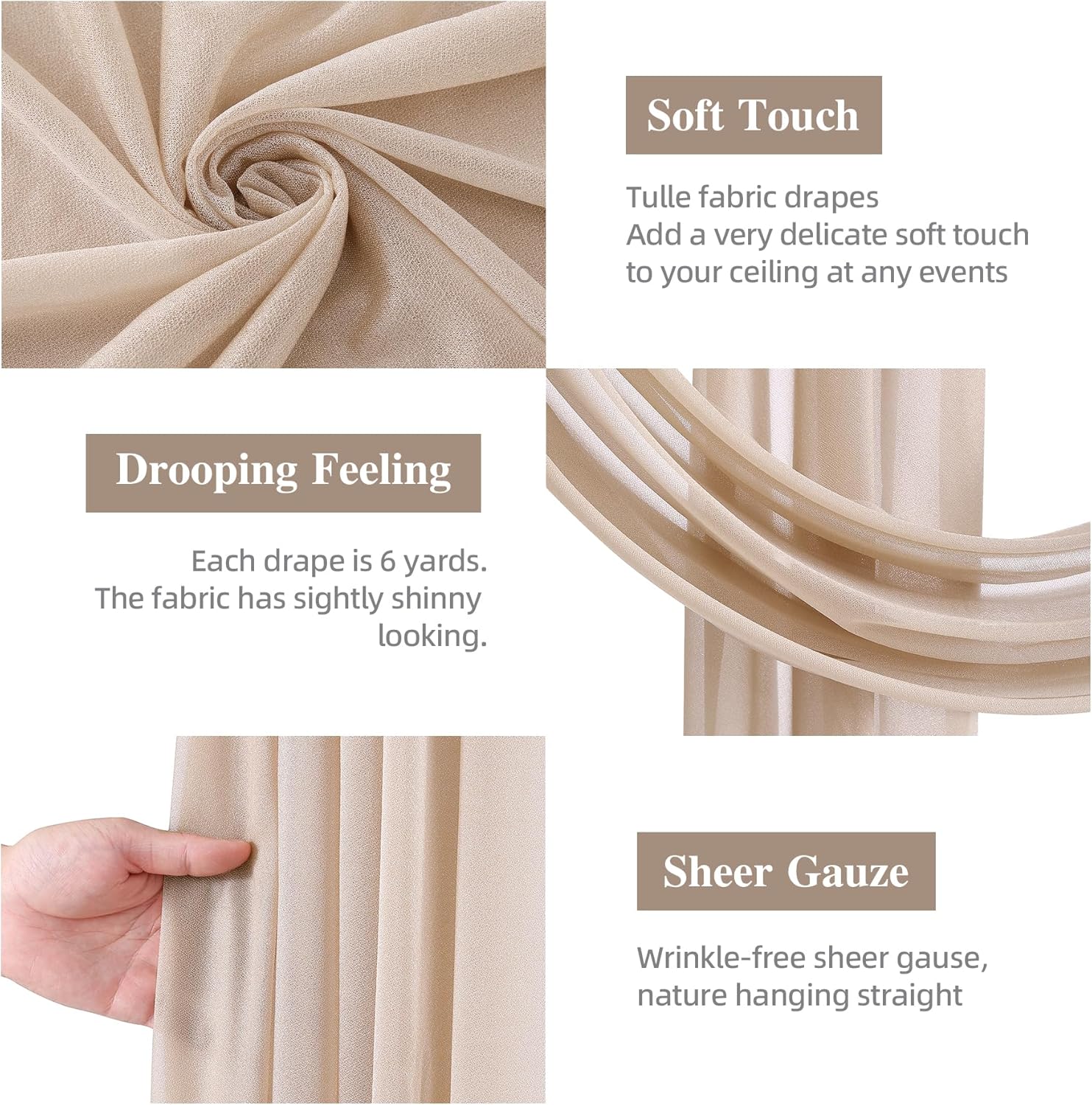 - Premium Wedding Arch Draping Fabric: These Sheer Drapes are made of 100% wrinkle-free tulle fabric, touch silky soft and looked romantic elegant, used sturdy and reusable . Whenever you use these scarf curtain, they can always keep smooth and flat.