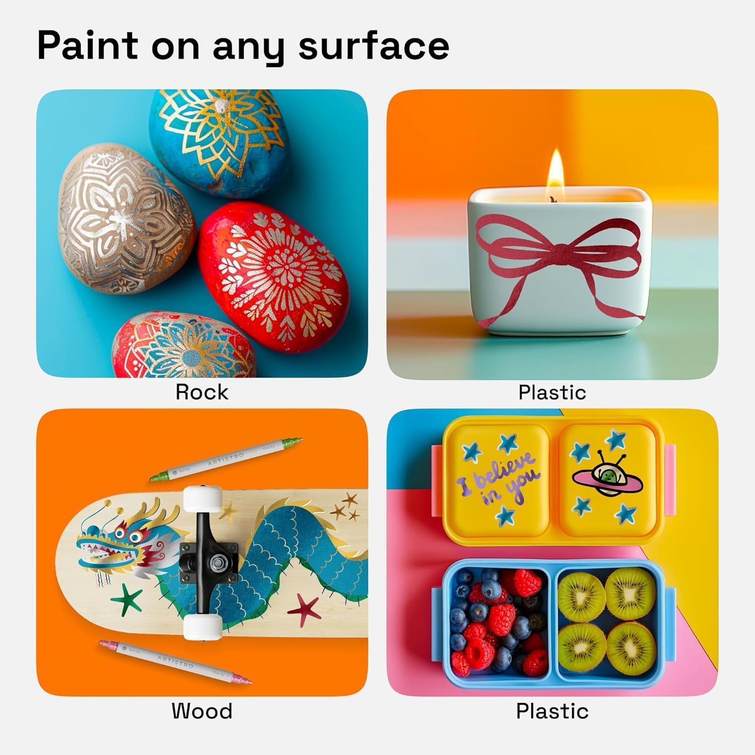 ARTISTRO 24 Metallic Dual-Tip Acrylic Paint Markers for Rock, Canvas, Glass, Wood, & More Fine + Dot Tips