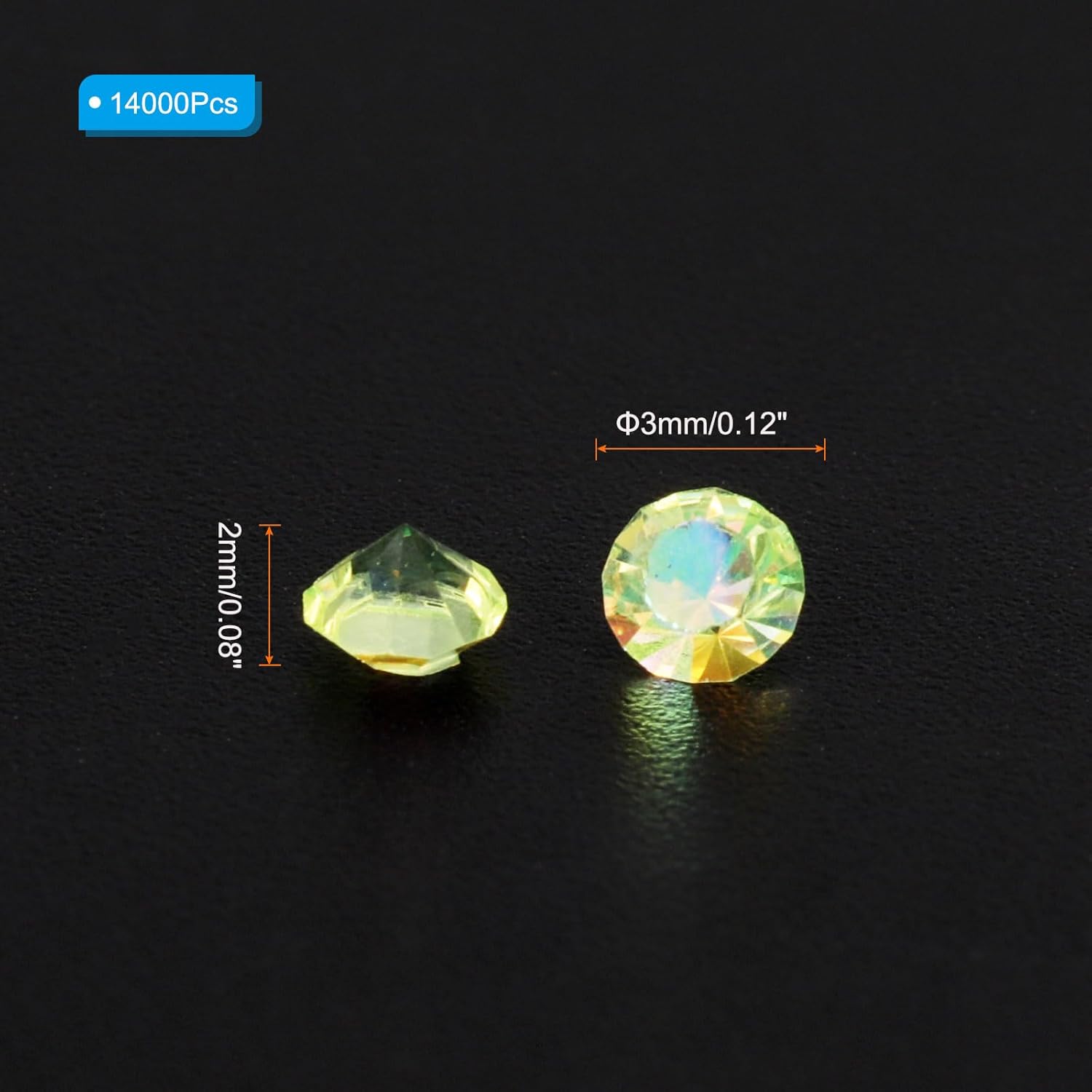 - Color: Chartreuse AB; Material: Acrylic; Size: 3mm x 2mm/ 0.12 x 0.08 inch (Dia.x H); Packing List: 14000Pcs x Acrylic crystal diamonds