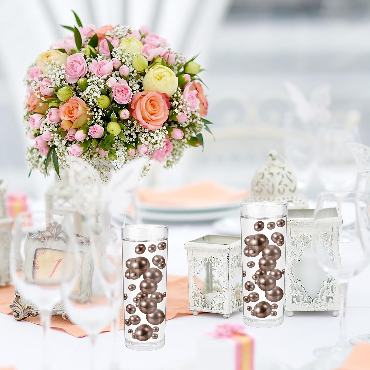 • 【Vase Beads for Vases】These no hole Vase Beads are ideal as vase fillers, the pearl decor surprises your family, and friends, Vase Beads for centerpieces are a great romantic and simply elegant, to decorate your floral arrangements, use Vase Beads for vases no hole as vase fillers, candle plate decorations, give you a sense of beauty and magnificence.