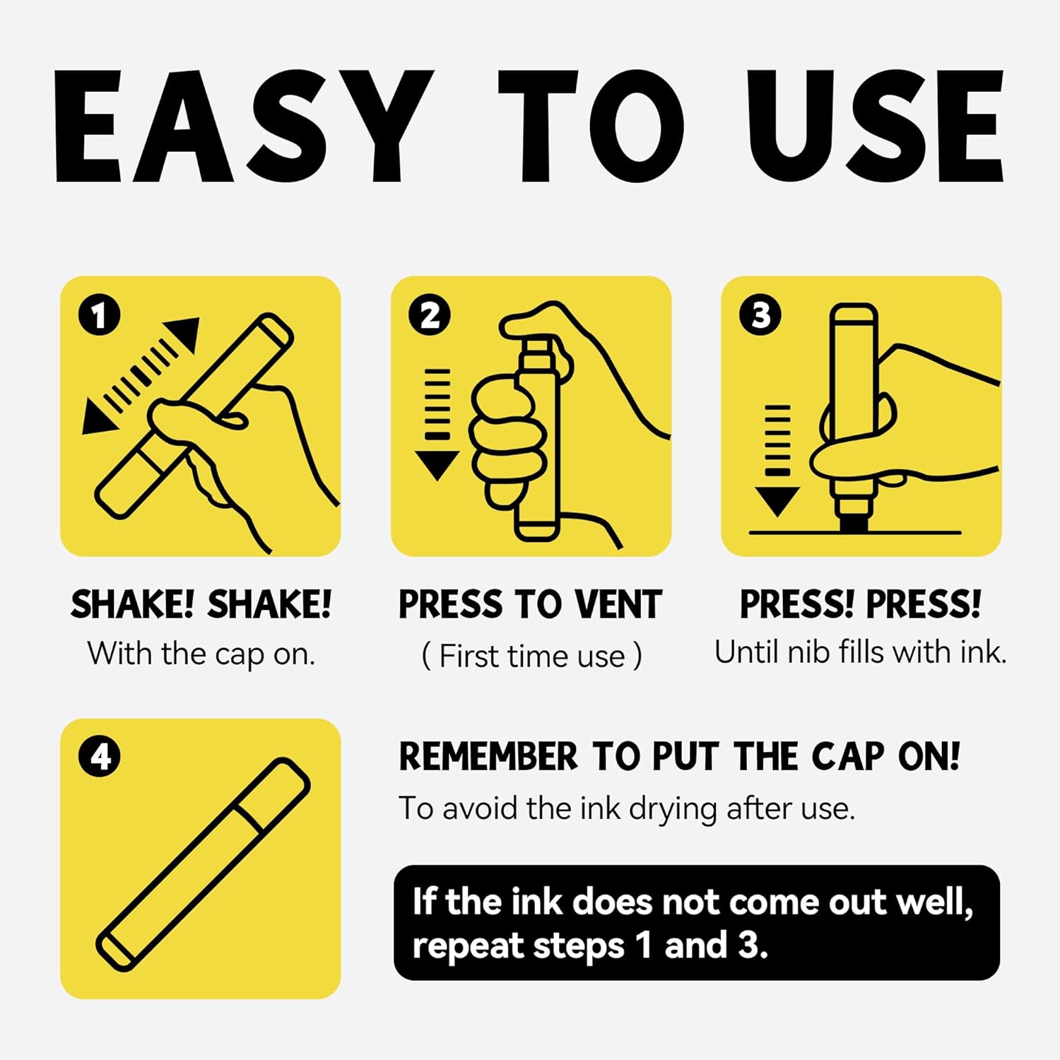 - 3-IN-1 NIB: (fine, medium, and jumbo) The thick tip permanent markers set felt wide tip is not only equipped with 3-IN-1 nib, but also allows the jumbo marker paint pen to produce smooth and even ink
