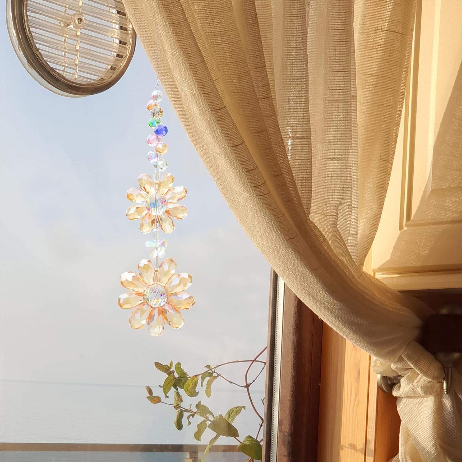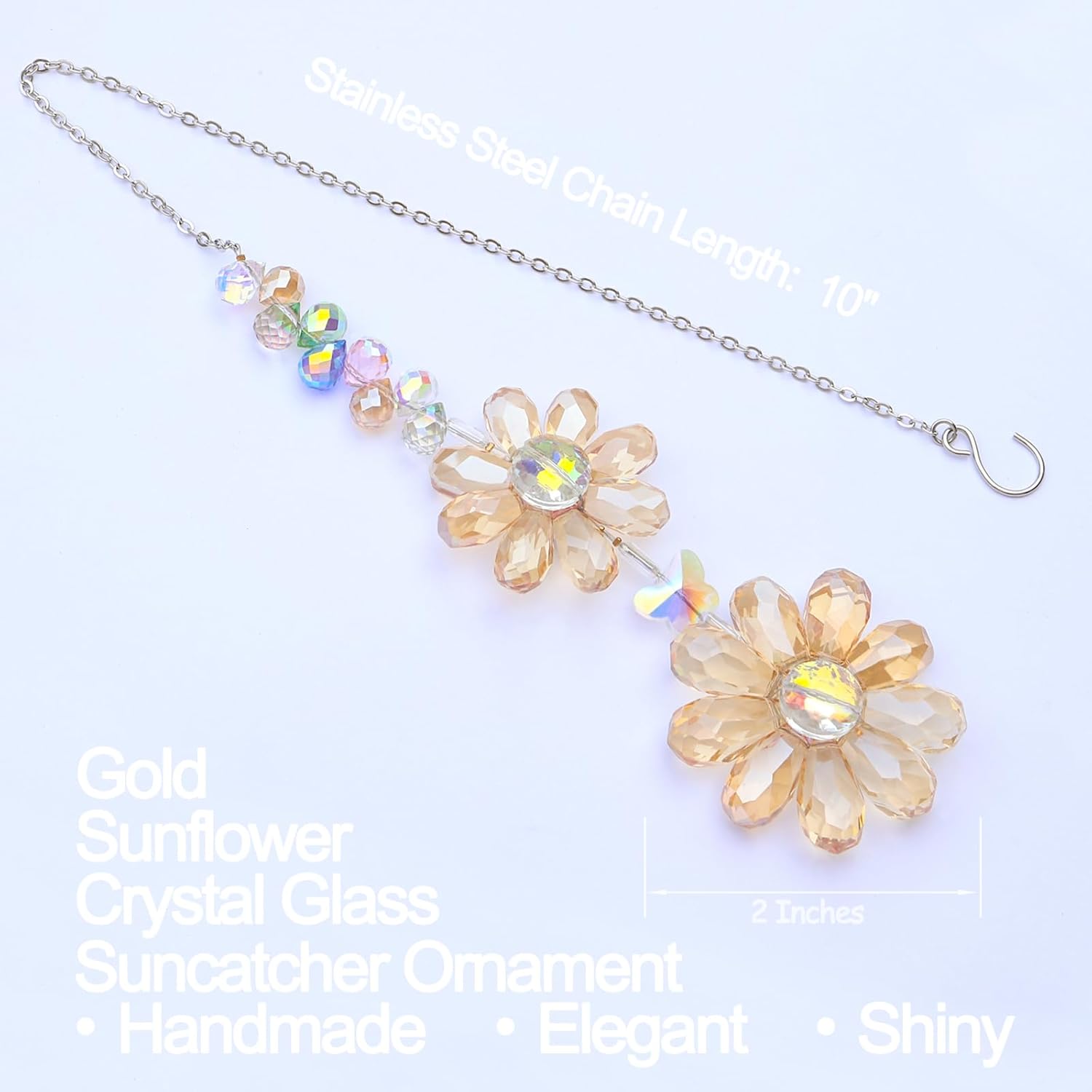 Crystal Flower Suncatcher Hanging Ornament, Rainbow Maker Window Sun Catcher Indoor Outdoor Patio Garden Decor (Gold)