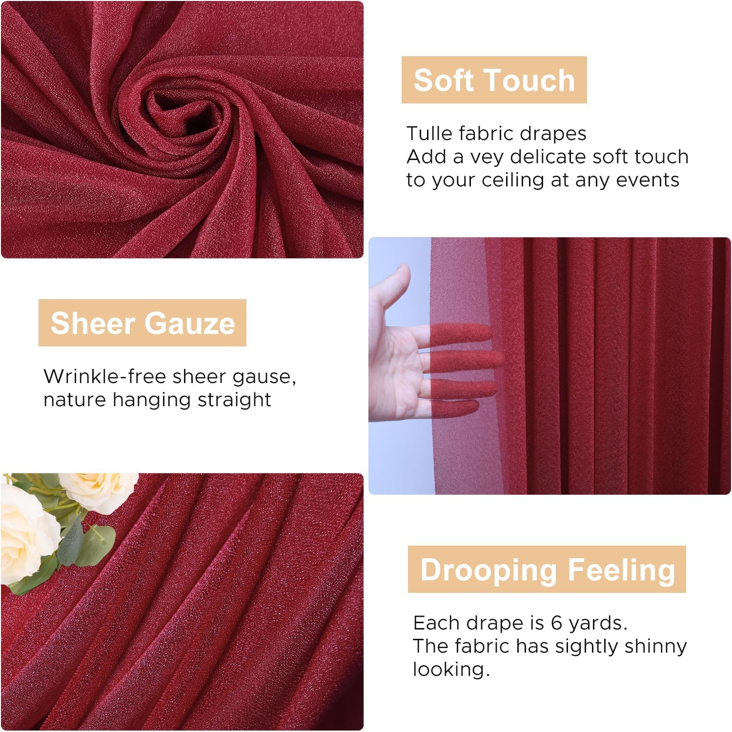 - 【Soft Wedding Drapes】Sheer drapes for wedding arch decor are made of polyester fabric, touch silky soft. These arch draping fabric is lightweight, easy to hang vertically with natural sagging, wrinkle-free, durable and reusable.