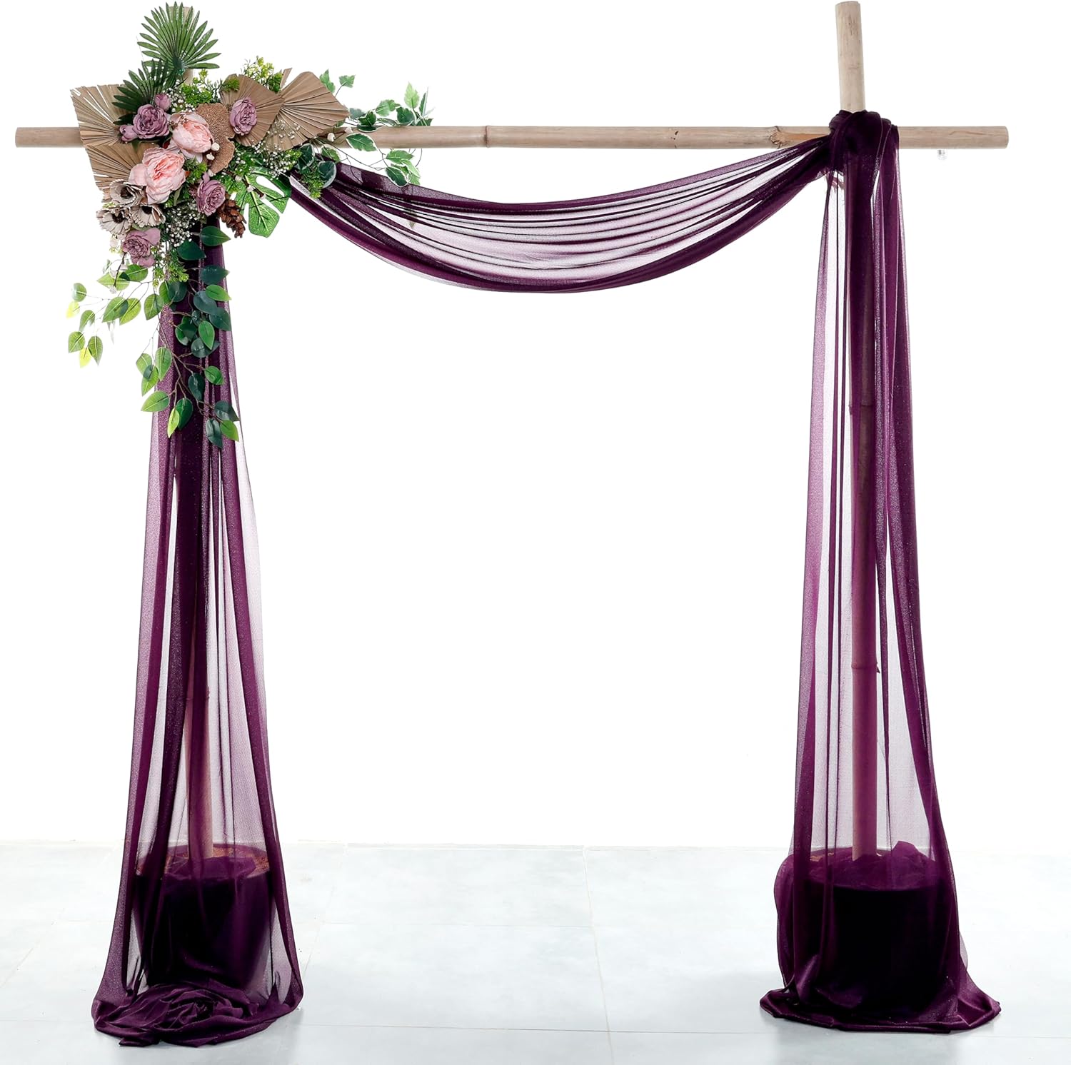 VDS Pack of 1 Panel (30 Inch X 50 Feet) Wedding Arch Draping Fabric Sheer Chiffon Fabric Drapery for Wedding Ceremony Reception Swag Backdrop Canopy Chuppah ARBO Altars Decoration (Eggplant)