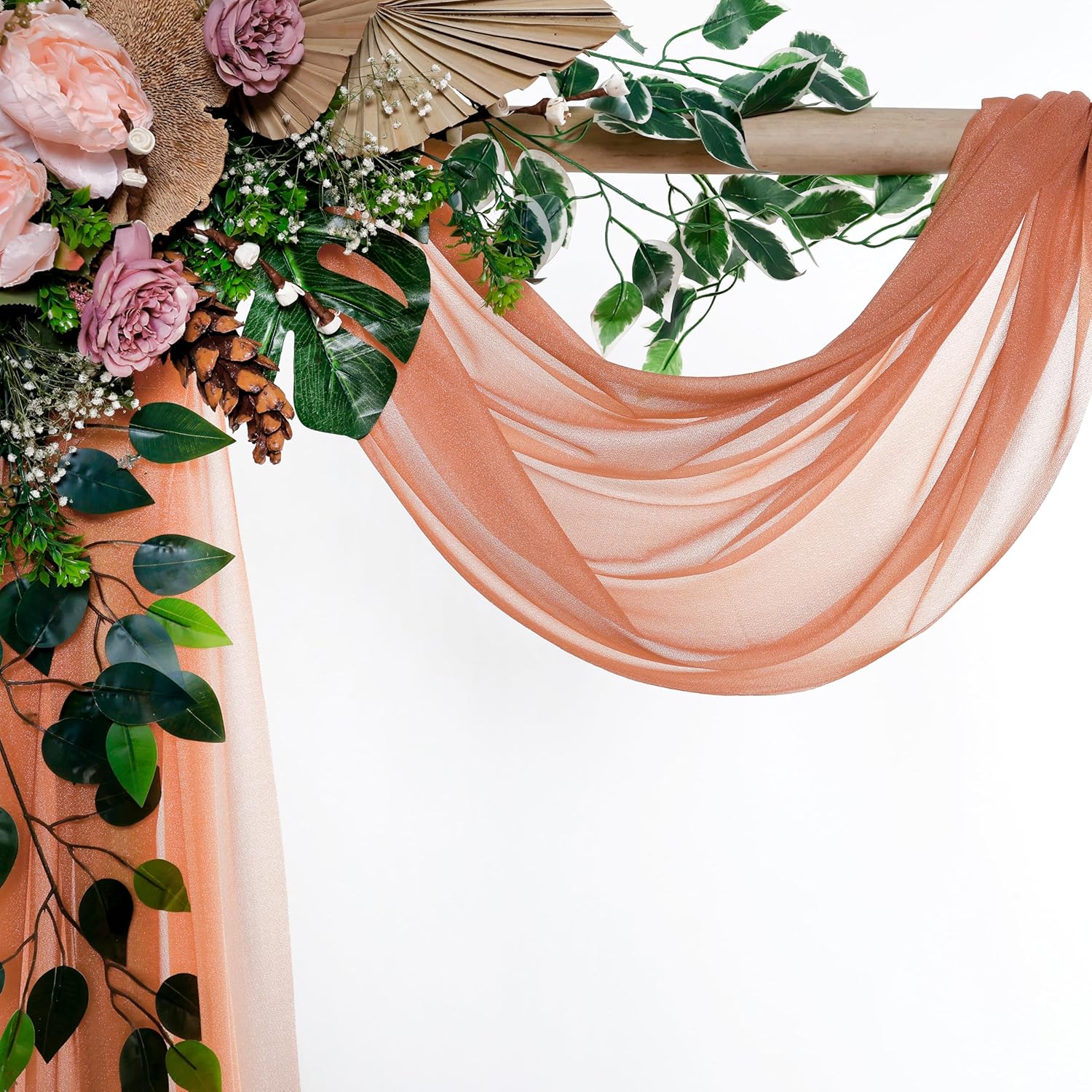VDS Pack of 2 Panel (30 Inch X 100 Feet) Wedding Arch Draping Fabric Sheer Chiffon Fabric Drapery for Wedding Ceremony Reception Swag Backdrop Canopy Chuppah ARBO Altars Decoration (Coral Peach)