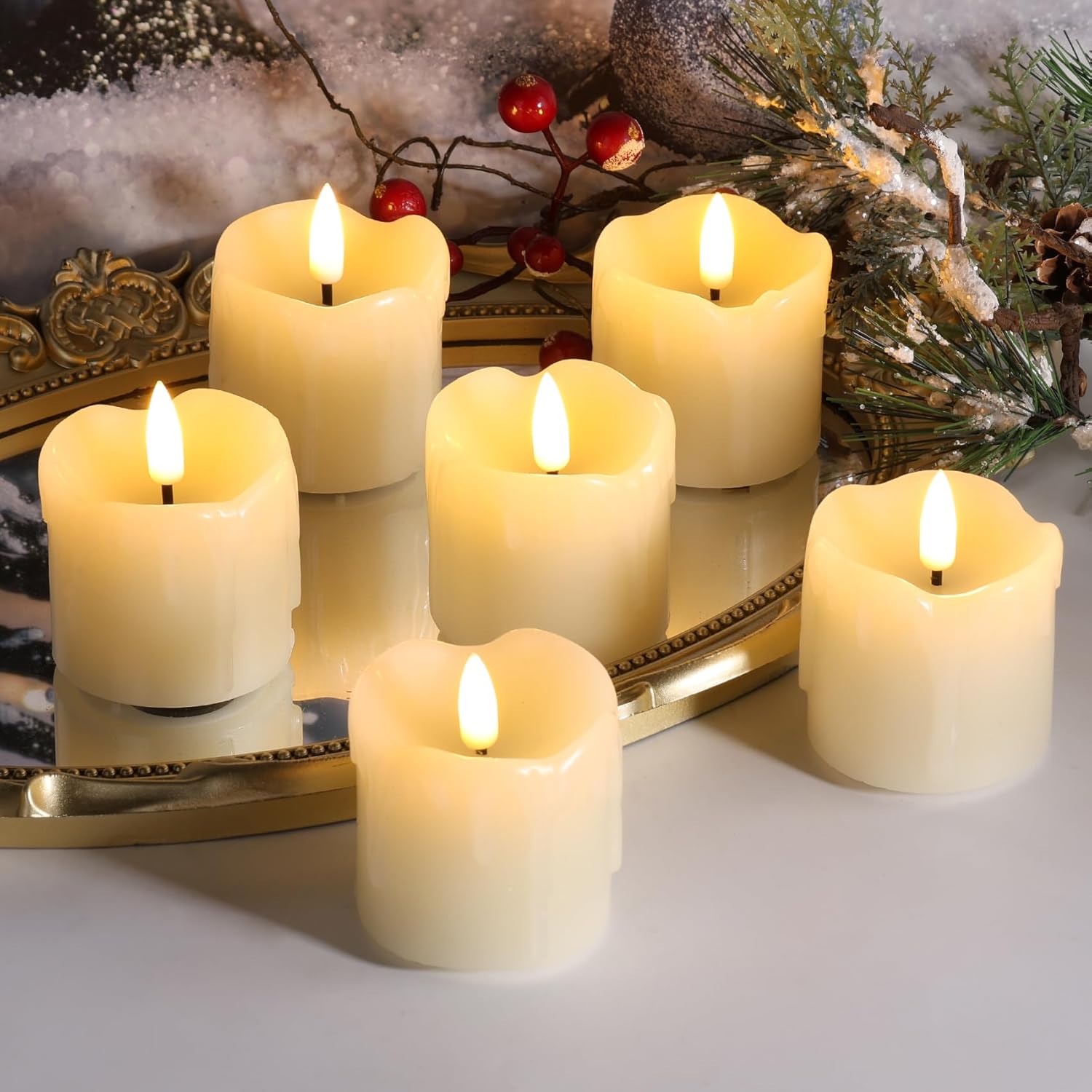 Eywamage Ivory Dripping Wax Flameless Votive Candles with Remote Batteries, 2x2 in Flickering Christmas LED Candles Set of 6
