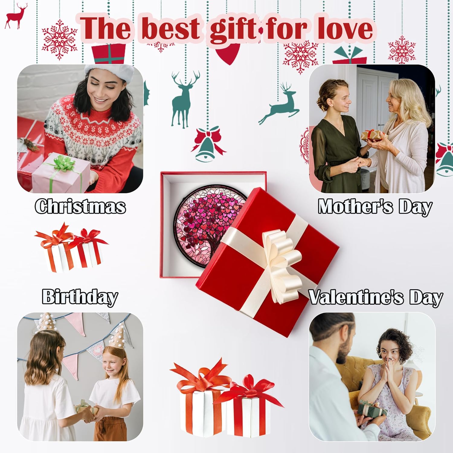 Stained Glass Window Hanging - DASTOLL, Birthday Gifts for Women Men Mom Dad, Pink Love Tree Suncatcher for Doors Window Home Sun Catchers Decor 6.3 in