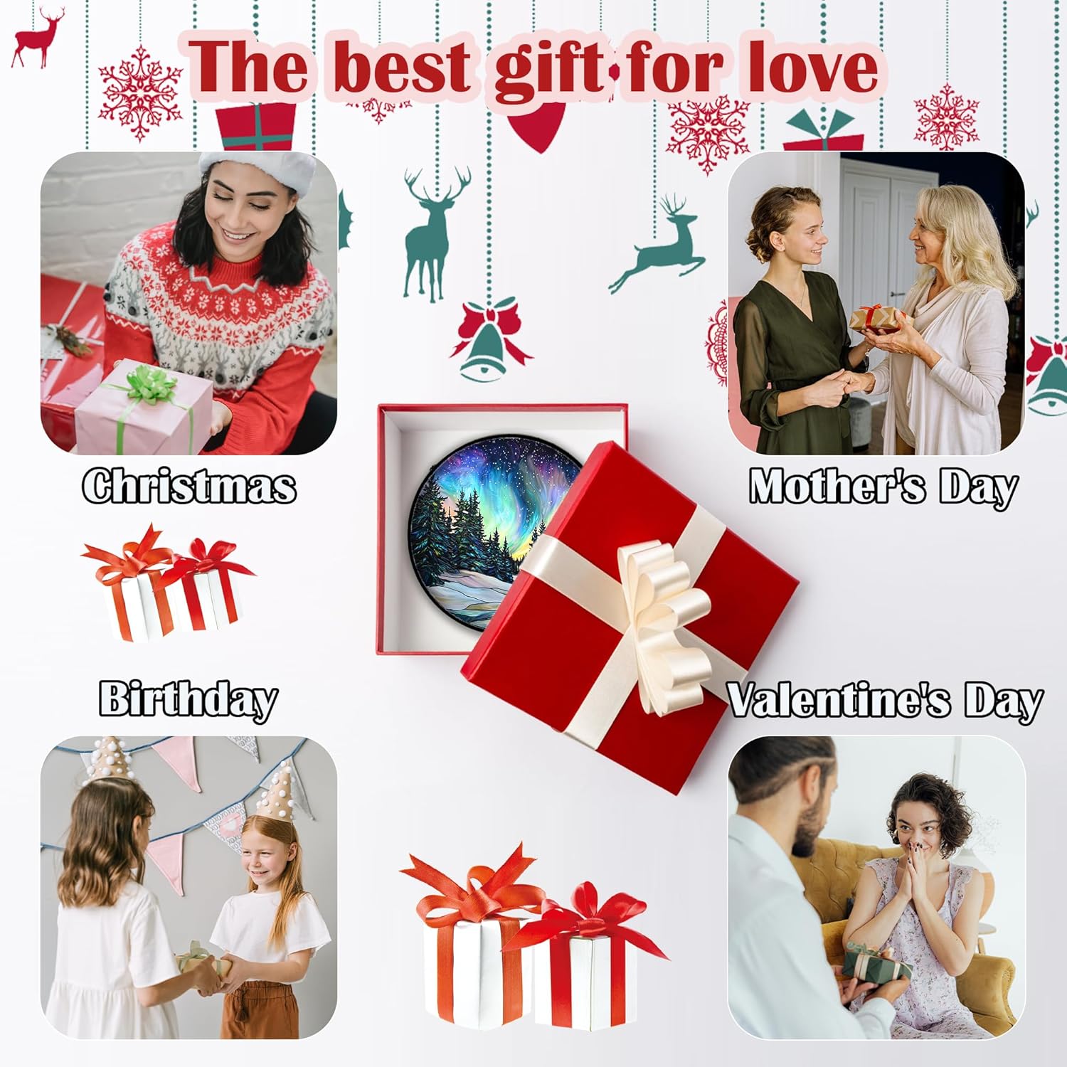 Stained Glass Window Hanging, Aurora Landscape Sun Catchers Glass Panel Green Trees Suncatcher Decor for Birthday for Women, Men, Wife, Aunt, and Mom 11.8x11.8 in