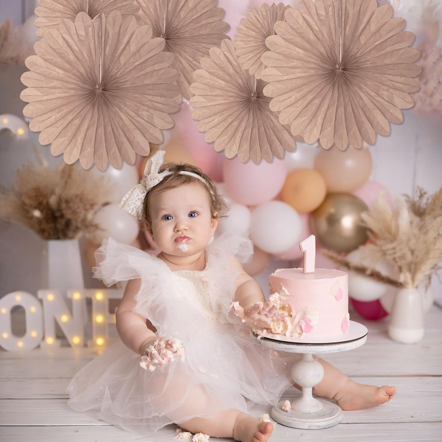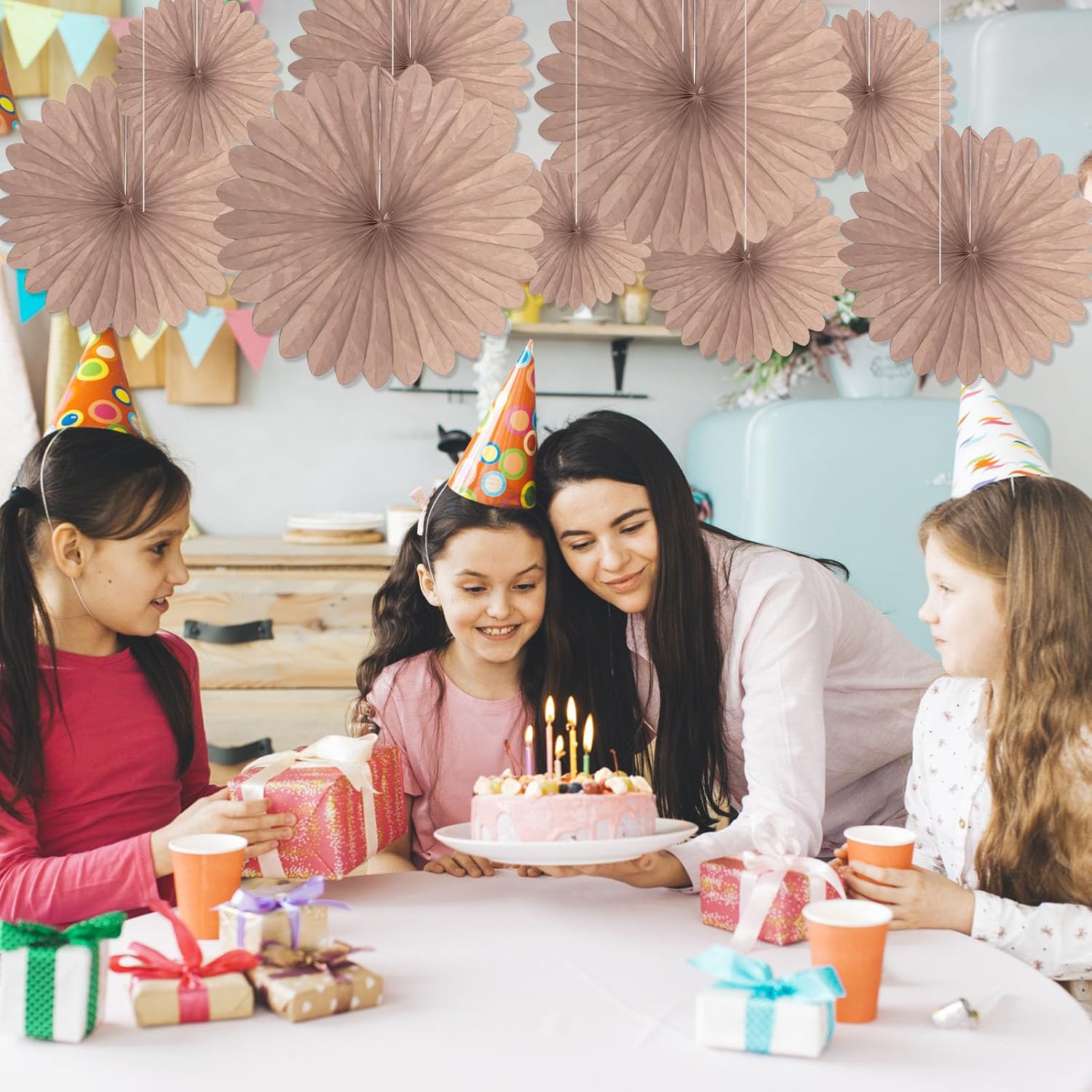 20 Pcs Brown Hanging Paper Fan, Round Paper Fans Decorations Set for Weddings, Birthdays, Engagement, Bridal Shower, Baby Shower Event, Graduation, Party Supplies Decor