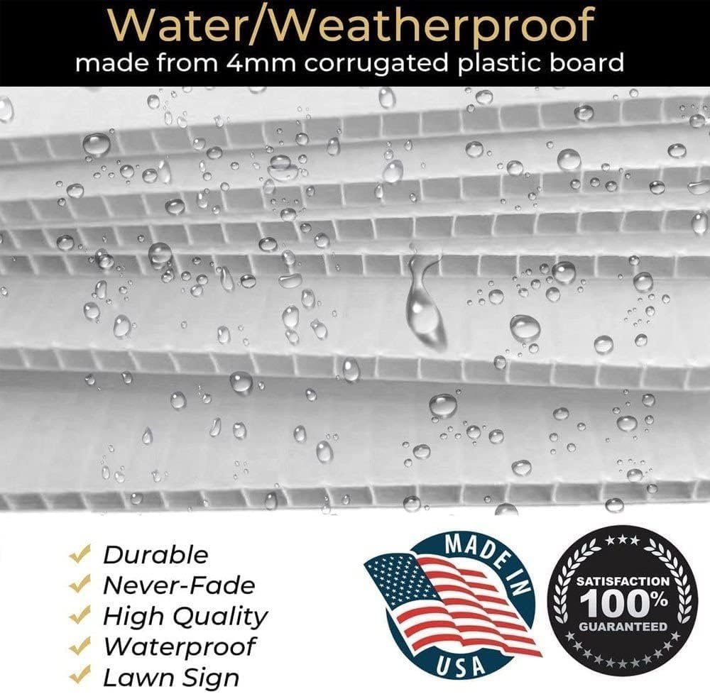 - 【Sturdy yard sign】: These personalized yard signs are constructed with weatherproof corrugated plastic sign material, a premium corrugated plastic that will endure practically any weather condition while staying vibrant, colorful, and unharmed.