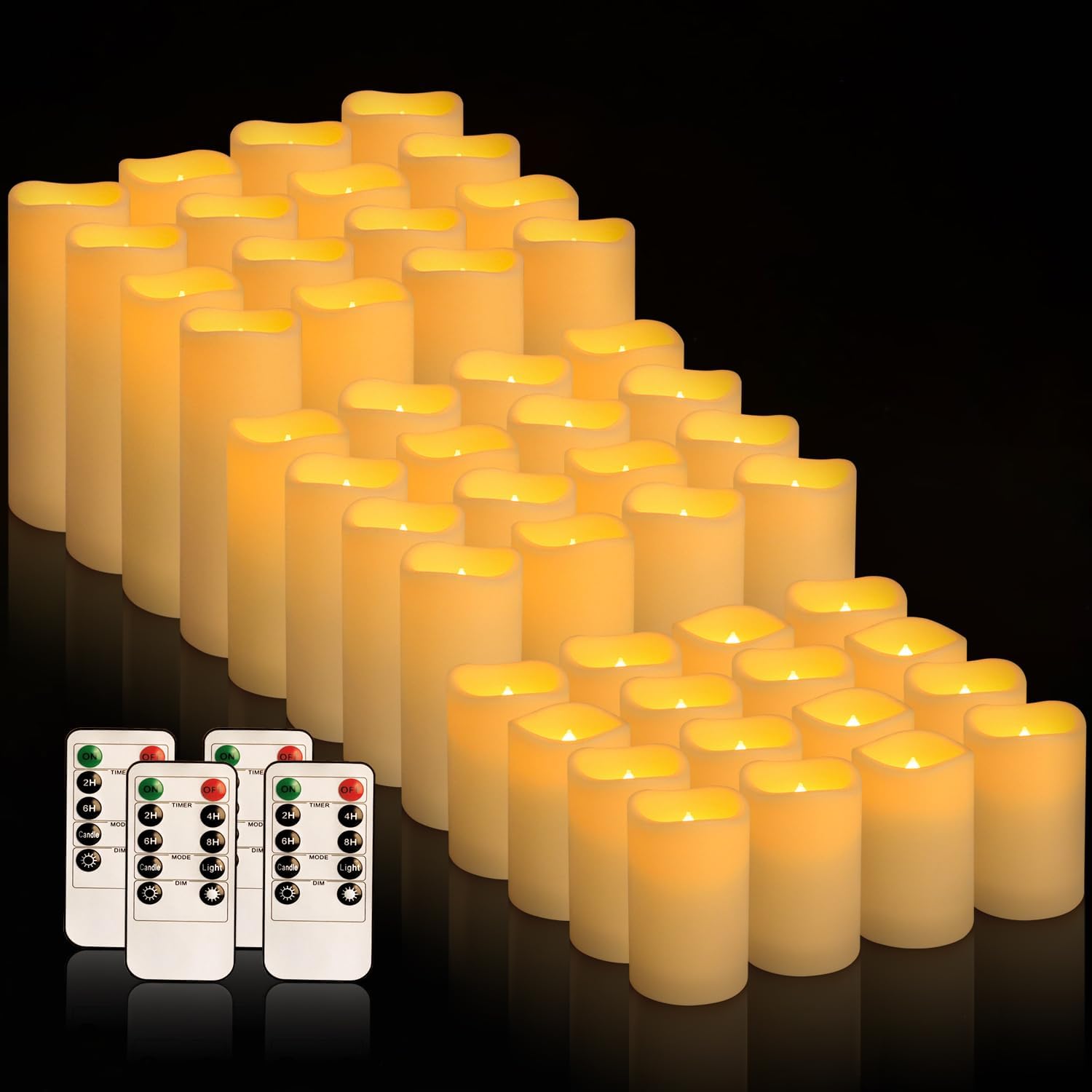 - 【Create the perfect atmosphere, choose this smokeless electronic candle】. Want to feel the romantic atmosphere of a fine restaurant at home? This 48-pack of electronic candles comes in 3 different sizes to easily create multi-layered light effects. Smoke-free design protects you and your family's health; sustainable utilization makes it environmentally friendly and aesthetically pleasing at the same time. Whether as a decorative highlight in the dining room, a reading companion in the bookstore, or a cozy accent in the bedroom, it fits in perfectly, adding a touch of unrepeatable elegance and warmth to your living space.