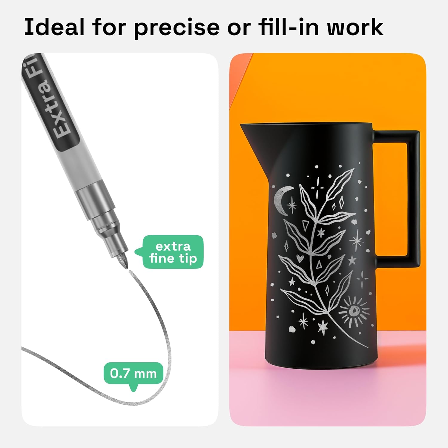 ARTISTRO 2 Silver Permanent Marker - Waterproof Markers for Tire, Fabric, Rocks, Glass, Ceramic, Wood, Paper - Oil Based Metallic Paint Pens - Extra-Fine Tip 0.7mm