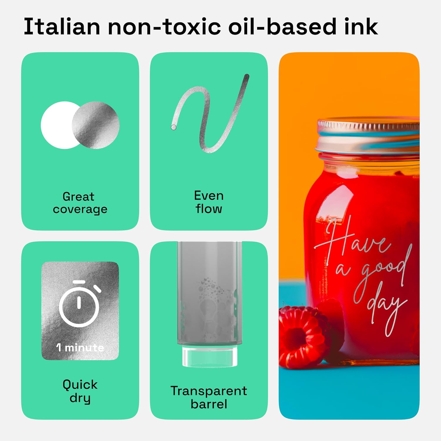 • Non-Toxic: This oil paint set conforms to ASTM D-4236 safety standards. Plus, there’s no odor with your oil markers paint pens. Each silver marker is ready to use with any project and is safe for kids and adults!