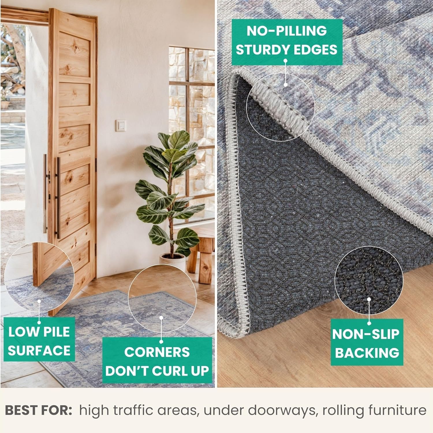 - EASY TO SETUP AND NON-SLIP: This one-piece machine washable rug with non-slip backing attached eliminates any additional setup. Simply unfold and lay flat upon arrival in the desired space. Non-slip backing prevents the rug from moving or sliding without the need for additional rug pad or grippers.