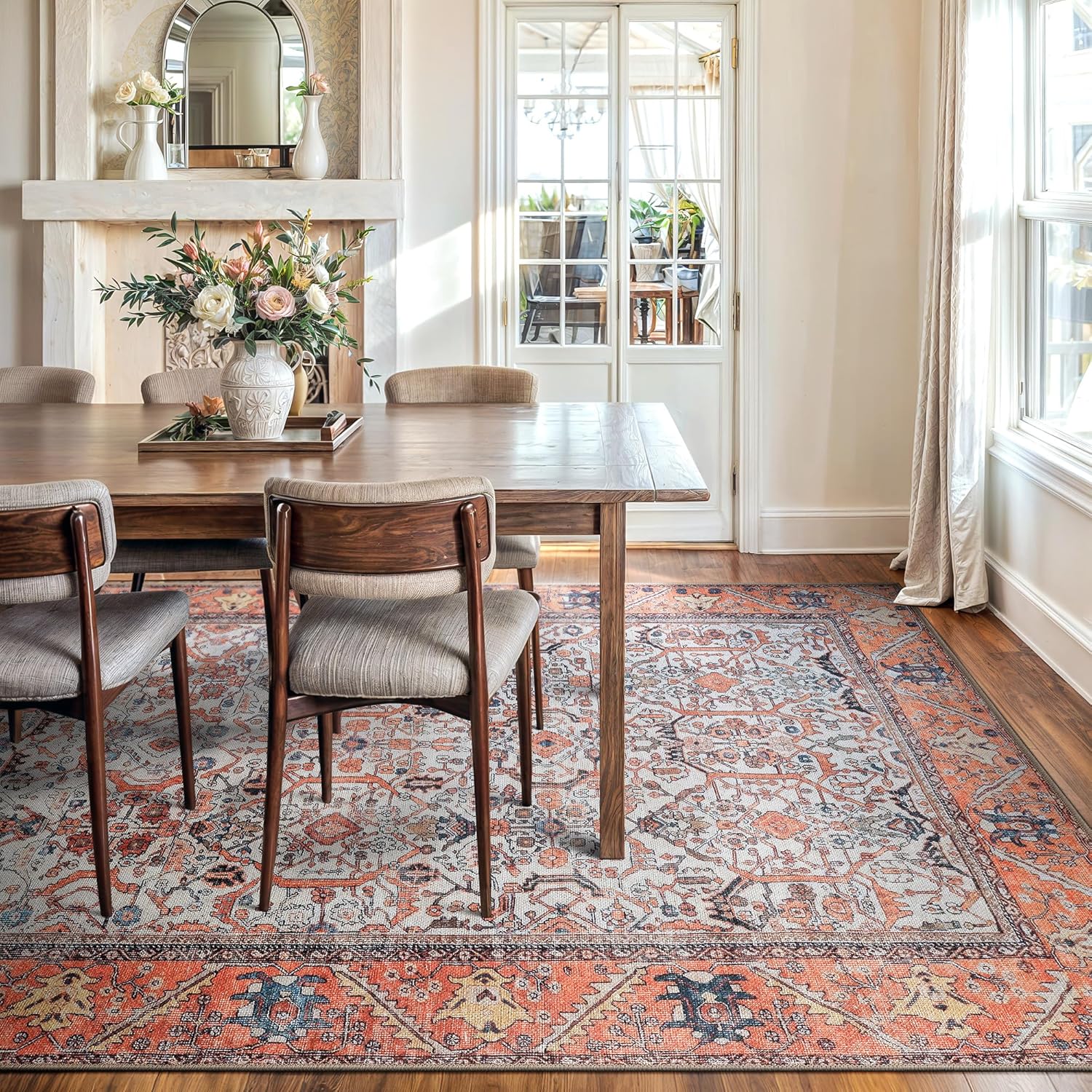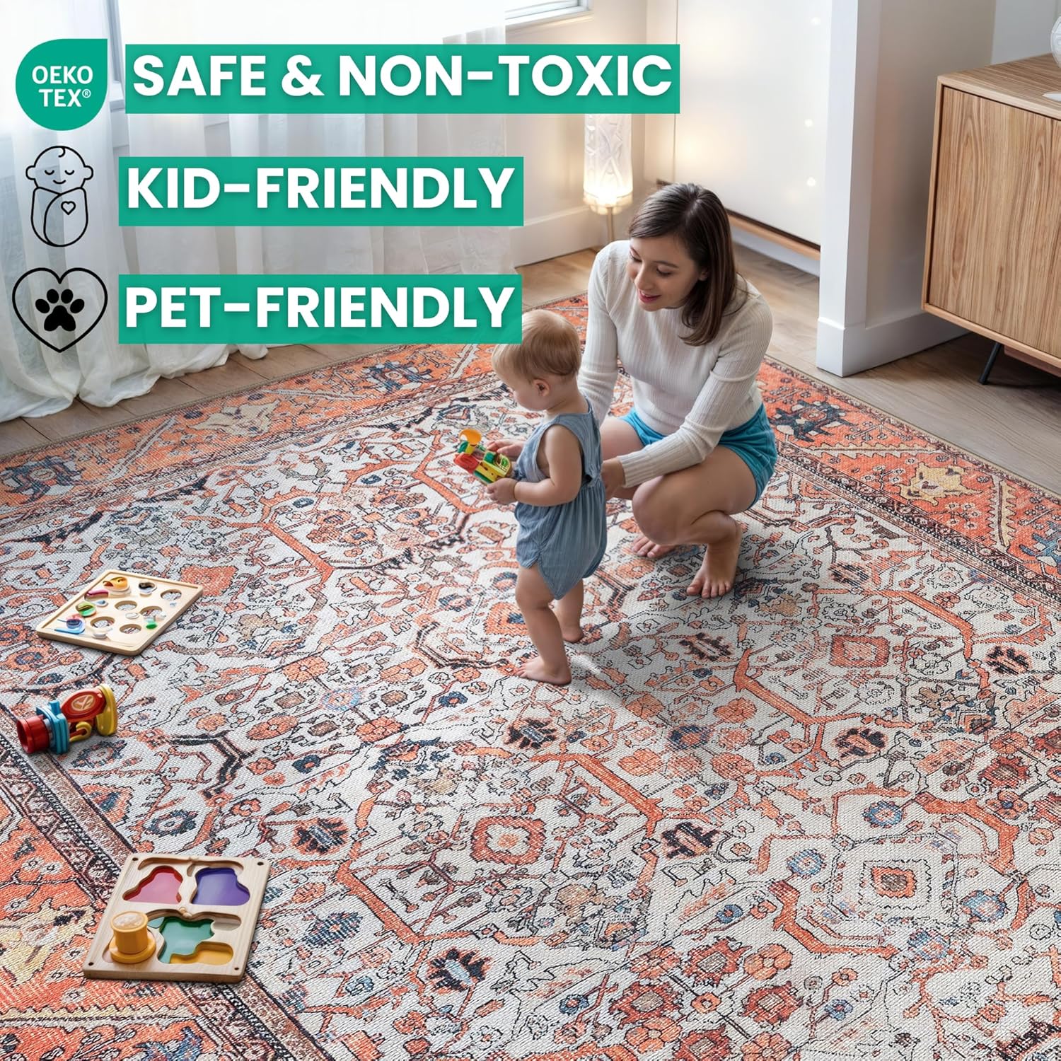 Bloom Rugs Washable Non-Slip 9' x 12' Rug - Orange Traditional Bordered Area Rug for Living Room, Bedroom, Dining Room, and Kitchen - Exact Size: 9' x 12'