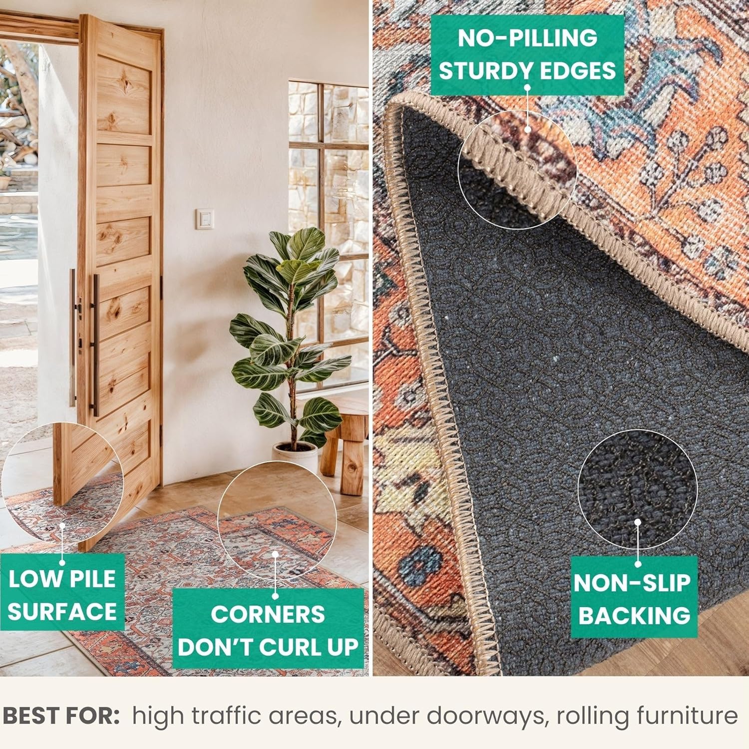 • EASY TO SETUP AND NON-SLIP: This one-piece machine washable rug with non-slip backing attached eliminates any additional setup. Simply unfold and lay flat upon arrival in the desired space. Non-slip backing prevents the rug from moving or sliding without the need for additional rug pad or grippers.