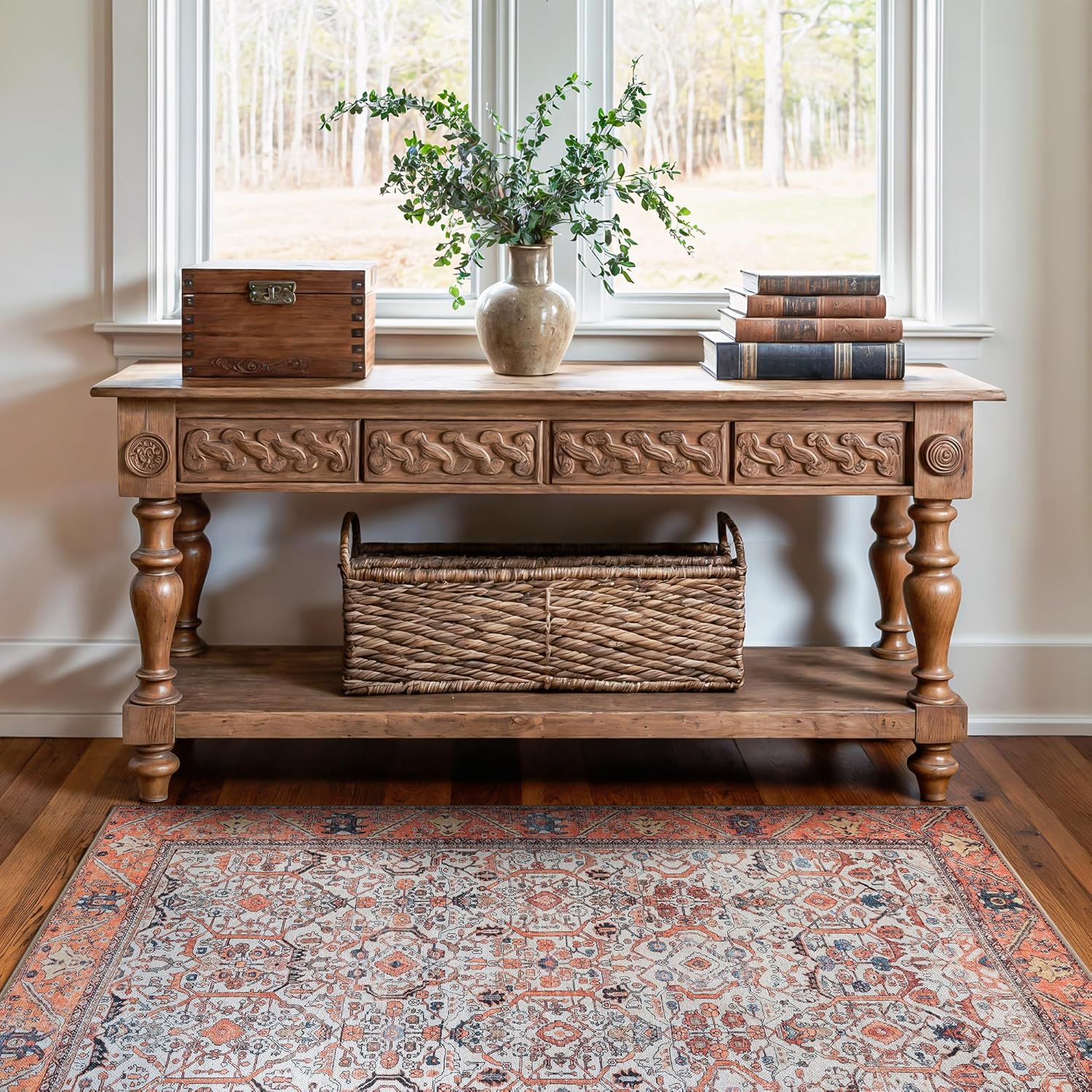 • EASY TO SETUP AND NON-SLIP: This one-piece machine washable rug with non-slip backing attached eliminates any additional setup. Simply unfold and lay flat upon arrival in the desired space. Non-slip backing prevents the rug from moving or sliding without the need for additional rug pad or grippers.