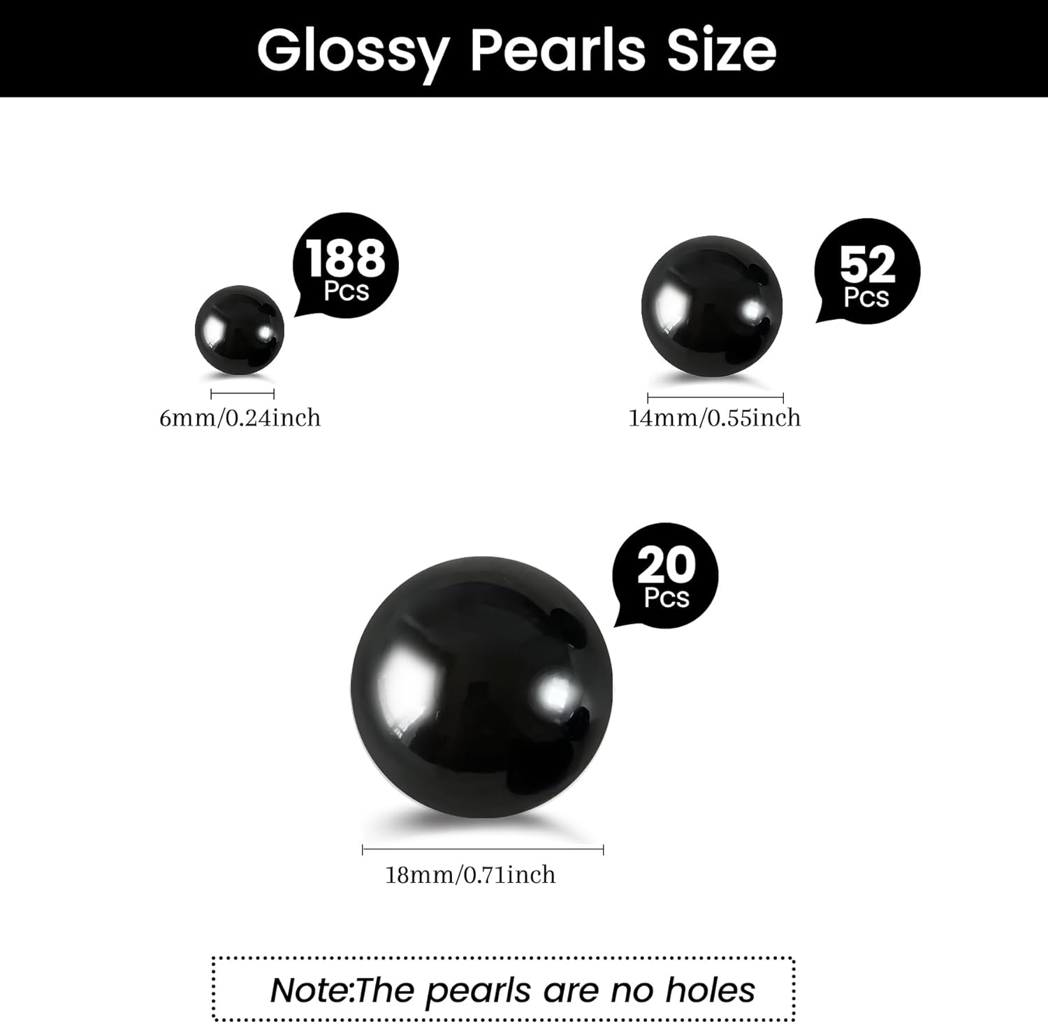 260Pcs Black Glossy Beads - 6mm, 14mm, 18mm Round Plastic Pearl Beads for Centerpiece Decor, Wedding, Birthday, Christmas Party, Home Decor