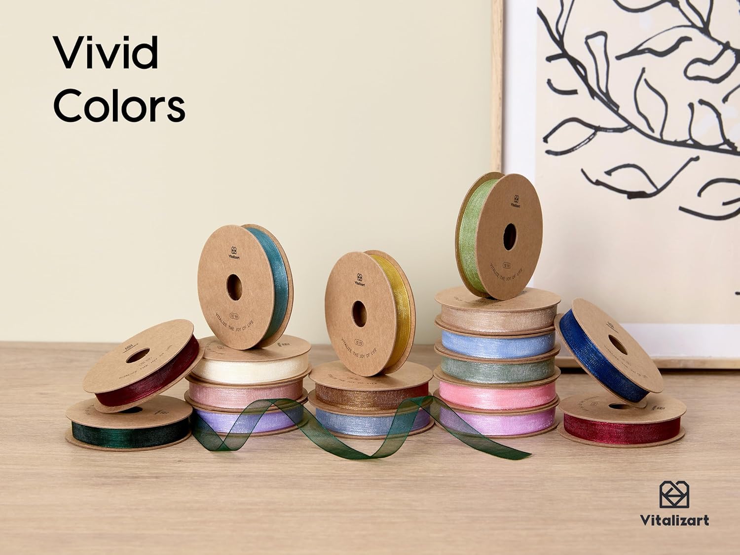 Vitalizart 3/8" x 90 Yards Organza Ribbon Pastel Color 9 Rolls x 10 Yd Sheer Ribbon for Gift Wrapping Crafts Christmas Tree Bows Wedding Invitations Wreaths Party Decor Bouquet DIY Projects