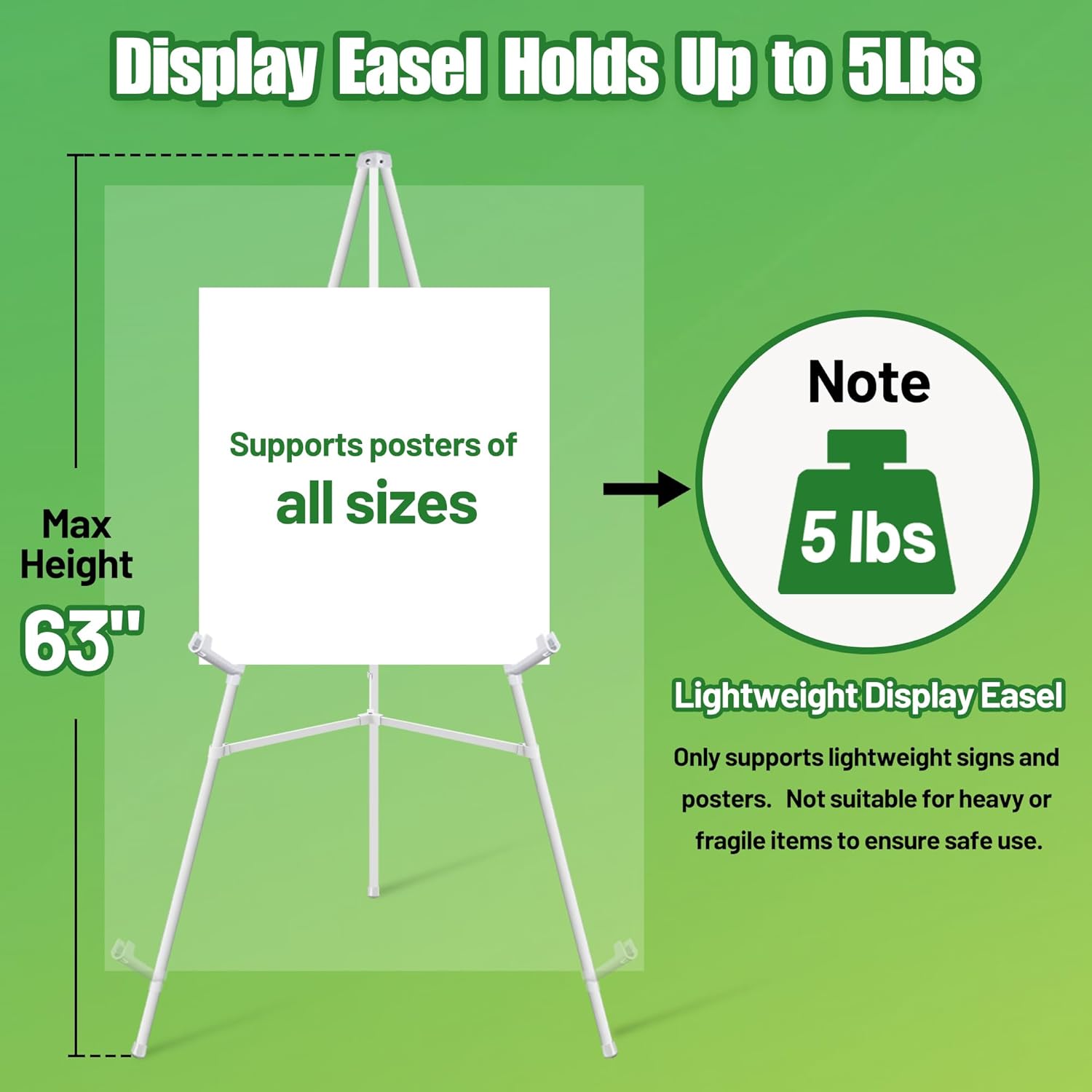 White Easel Stand for Sign & Poster - 63" Adjustable Display Easel for Wedding Sign Stand, Welcome Sign, Canvas, Painting - Lightweight Folding Art Easel with Carry Bag, Holds 5 lbs