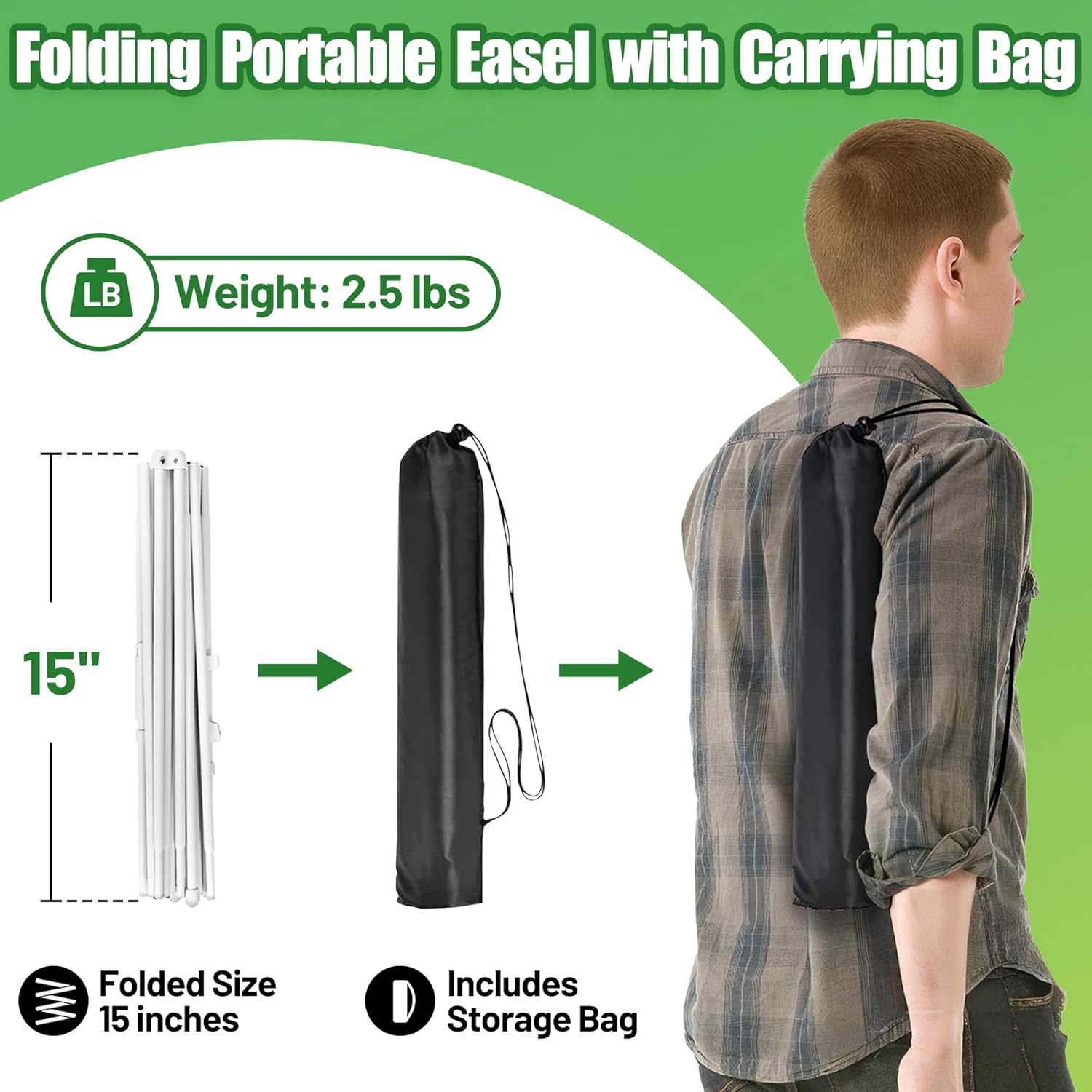 - Folding Portable Easel: The easel weighs 2.5 pounds and folds up to 15 inches; and comes with a carrying bag for easy storage and on-the-go carry