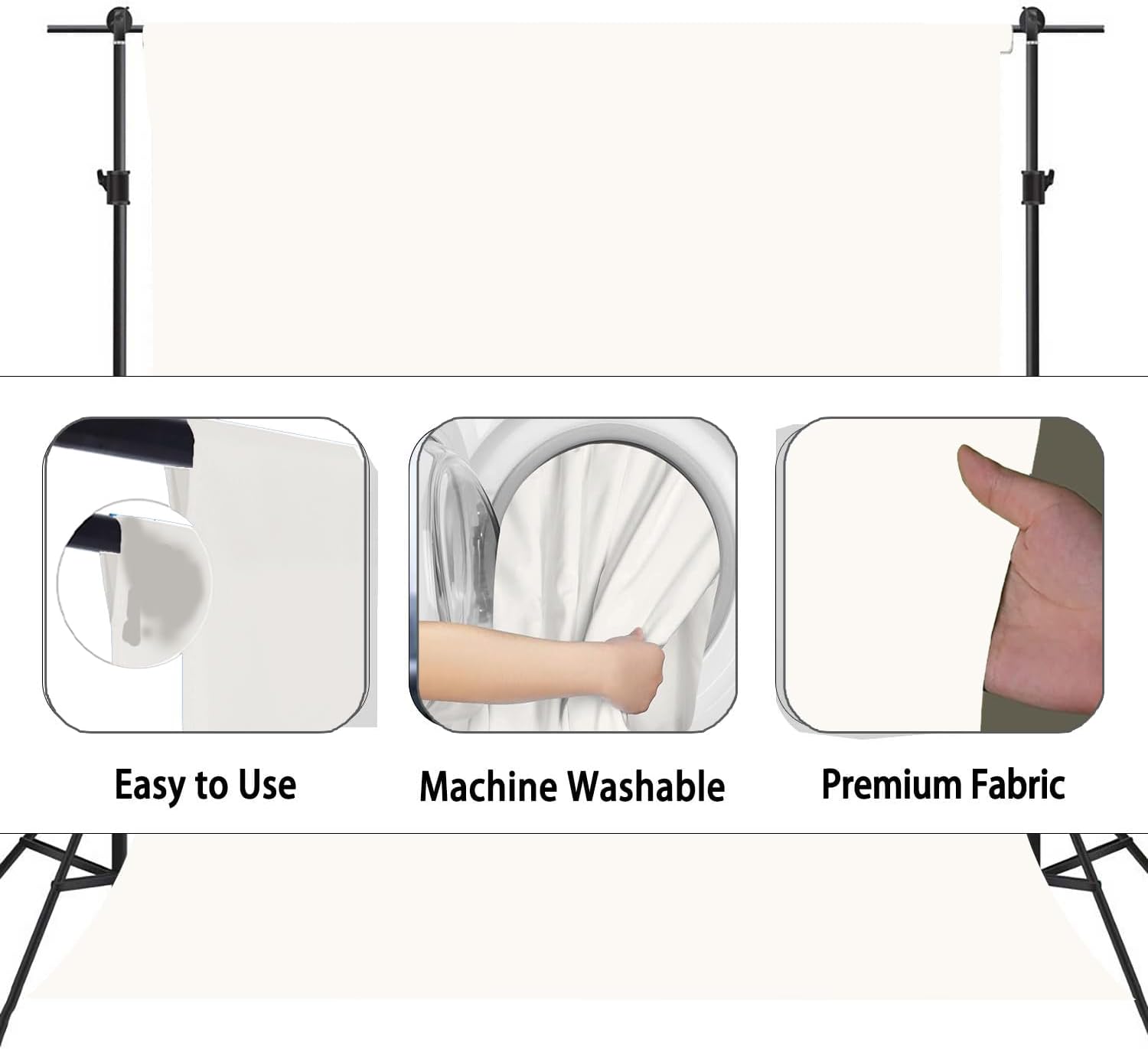 - Excellent Quality: This ivory photography backdrop is made of polyester fiber, soft and non-reflective fabric, durable, can be ironed, light weight, easy to carry, and all edges have good locking seams and are not easy to tear.