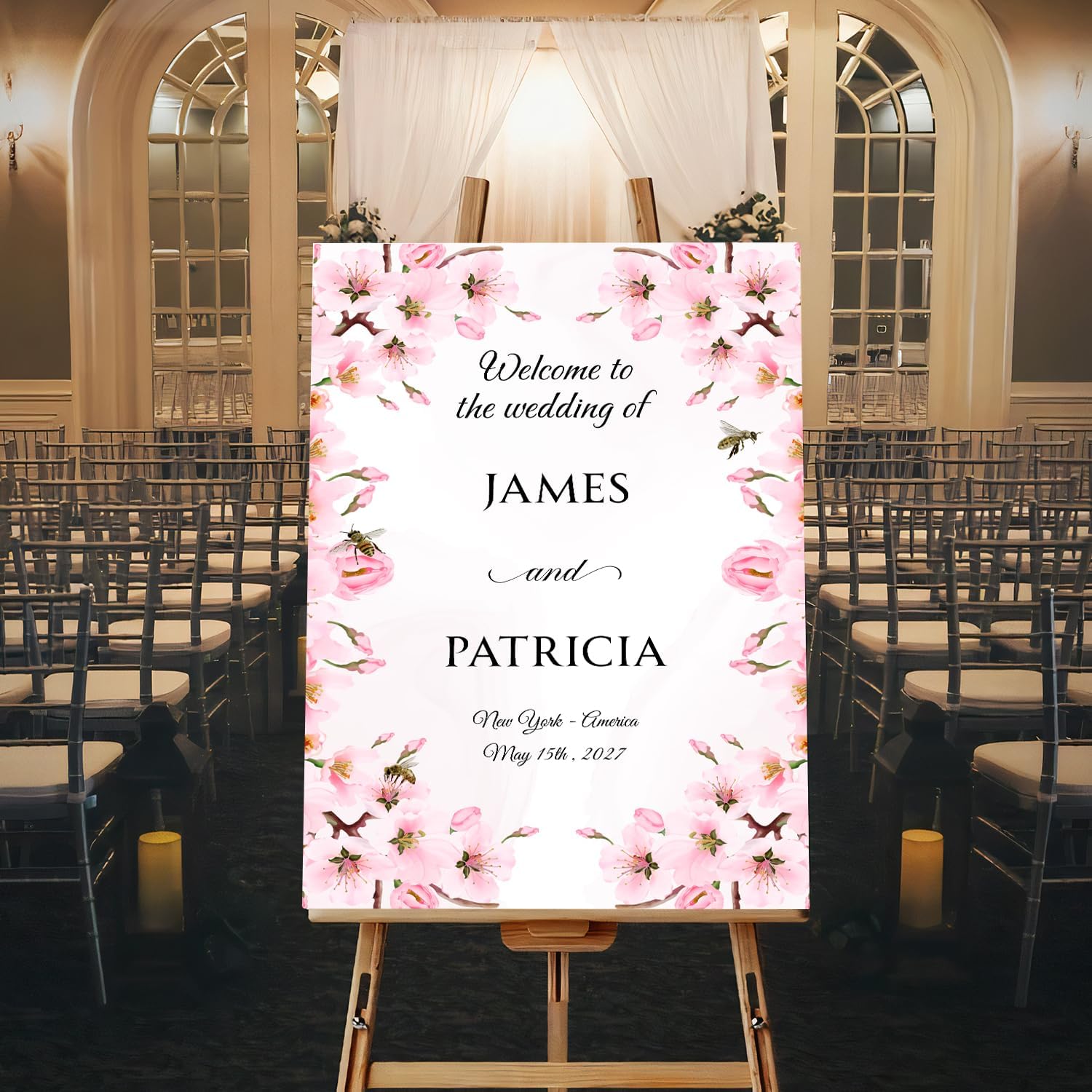 Personalized Blush Pink Wedding Welcome Sign, Floral Printable Wedding Board, Custom Welcome Signs Decoration Outdoor Reception