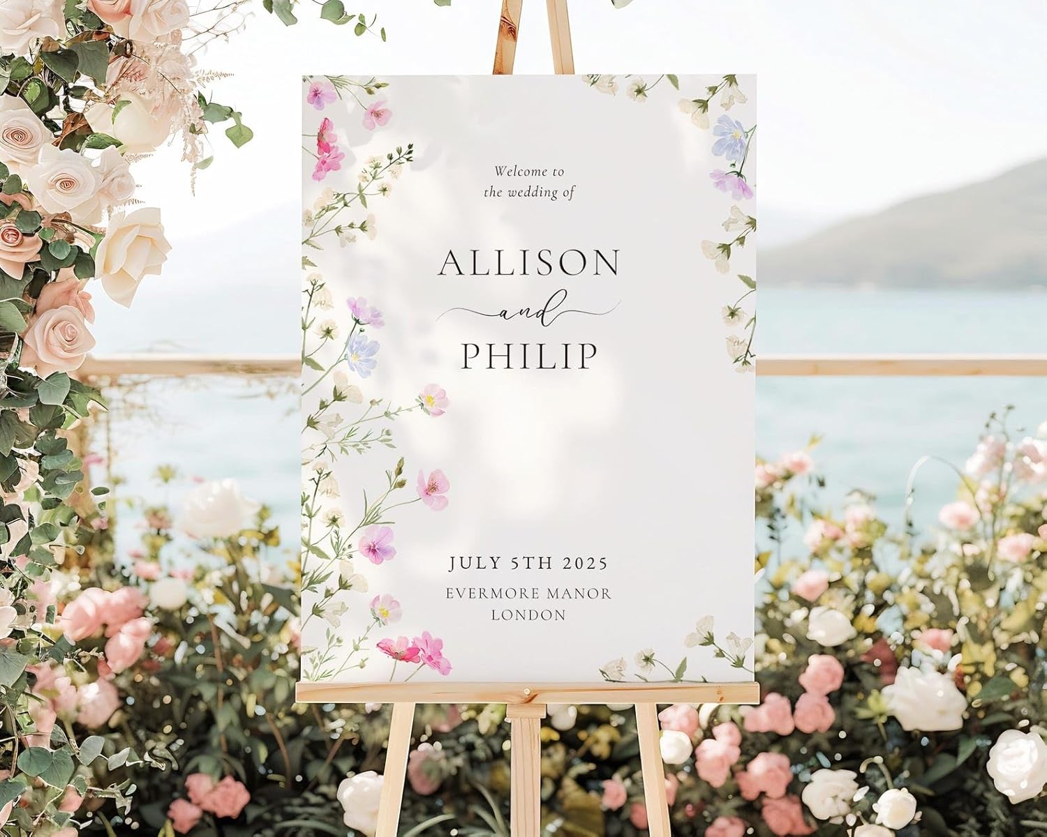 Welcome Wedding Signs, Minimalist Floral Spring Wedding Sign Decorations Signage 12" X 18" (Small), 27" (Medium), 36" (Large), Plastic, Modern, Pole Mount, Weather